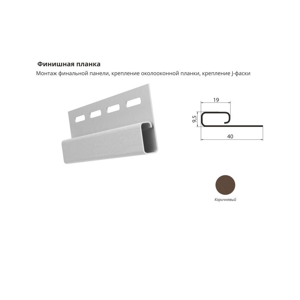 Финишная планка Коричневый , можно купить в интернет магазине Сайдинг-Маркет, от производителя ЦентрПласт. Доставим быстро и по всей России. Цена производителя. Все в наличии на складе и на заказ. Гарантия. Заходи — выбирай!